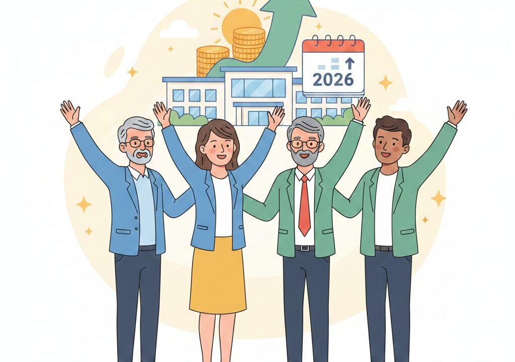 A. 給与月額や扶養状況によって異なりますが、2026年1月の1%アップで月2,000〜4,000円程度、2031年の6%アップで月15,000〜25,000円程度の手取り増が見込まれます(概算)。